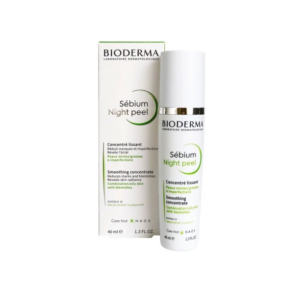 Le Concentré lissant Sébium Night Peel de Bioderma contient des d’ingrédients qui constituent un peeling doux et naturel pour raviver l’éclat du teint :