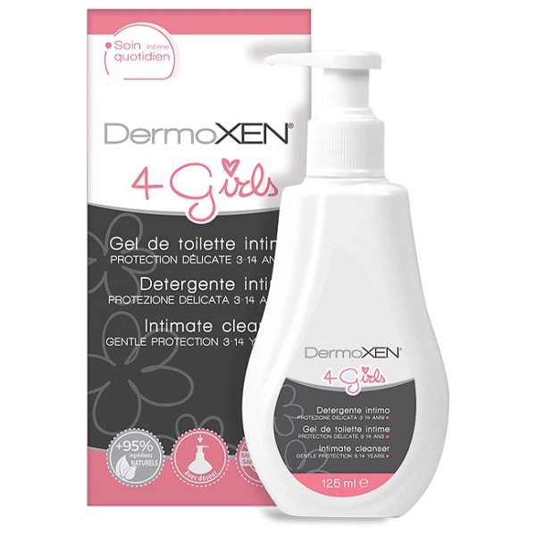 DermoXEN gel de toilette intime 4GIRLS, spécialement conçu pour l’hygiène intime quotidienne des jeunes filles en âge pré-pubère, exerce une délicate action nettoyante, protectrice et émolliente, grâce à la présence de l’huile de