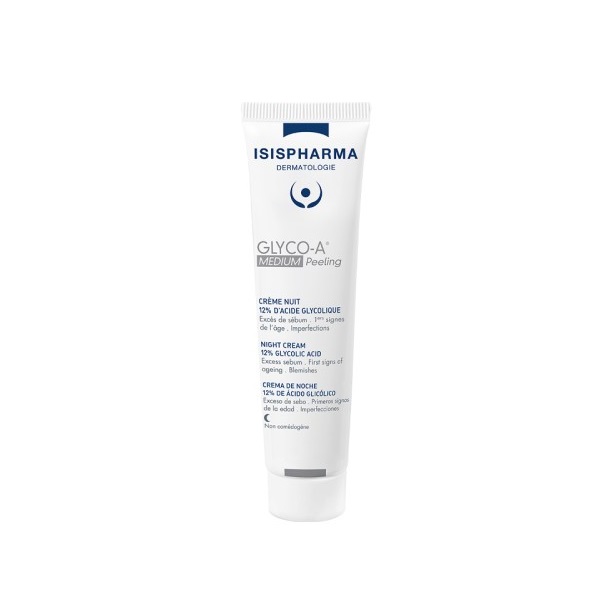La crème de nuit GLYCO-A® MEDIUM Peeling offre à tous l’efficacité d’un peeling chez soi, avec une concentration d’acide glycolique optimale de 12%, pour un teint plus lumineux et une peau matifiée et lissée.