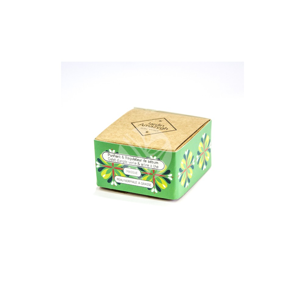 Le galet d’argile verte Jardin Amazygh aux l’huiles essentielles d’arbre a the (tea tree) et lavande est purifiant. Il régule le sébum.