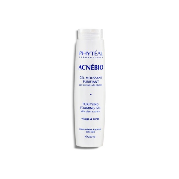 ACNÉBIO GEL MOUSSANT Possède des propriétés de purification en profondeur de lépiderme et au niveau des résidus séborrhéiques qui obstruent les pores de la peau. Grâce à lextrait de romarin, il tend à réguler les sécrétions sébacées et de ce fait à éclaircir le teint. ACNÉBIO GEL MOUSSANT rend la peau moins luisante et moins terne, permettant de traiter les peaux grasses en éliminant les impuretés.