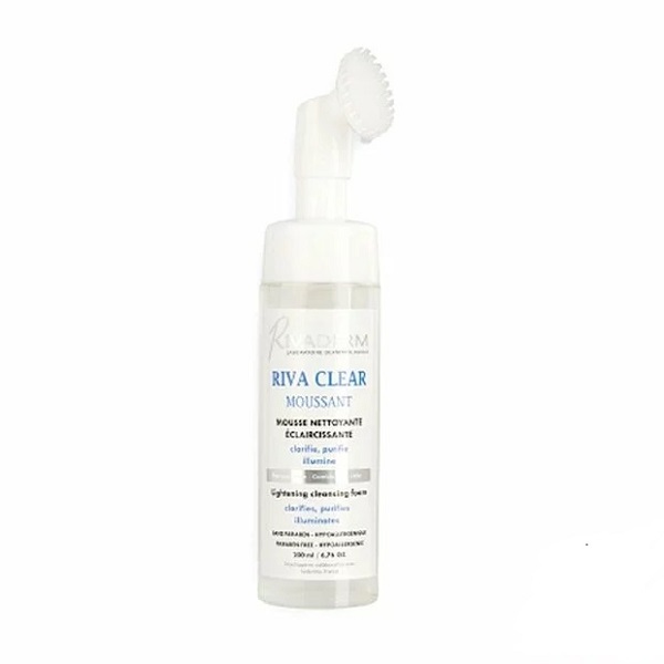 RIVA CLEAR Moussant avec une Brosse spécialement conçue pour Purifier et Démaquiller la peau en douceur ,lui donnant un formidable Coup d’Éclat .