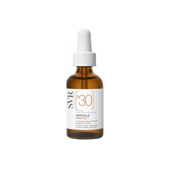SVR Ampoule Protect SPF30 30 ml est un sérum qui offre à votre peau une correction face au vieillissement naturel de la peau face aux facteurs accélérateurs du vieillissement : la pollution et les UV. Son puissant cocktail d’antioxydants associé à un complexe de filtres solaires SPF30 corrige les rides, les taches et le teint tout en formant un bouclier protecteur à la surface de la peau. Jour après jour, le teint est plus uniforme et plus lumineux, les signes de l’âge sont corrigés.