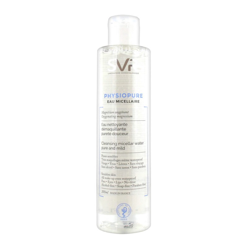 SVR Physiopure Eau Micellaire Eau Nettoyante Démaquillante Pureté Douceur 200 ml est une eau micellaire pour le visage, les yeux et les lèvres, qui est spécialement formulée pour le démaquillage des peaux sensibles.