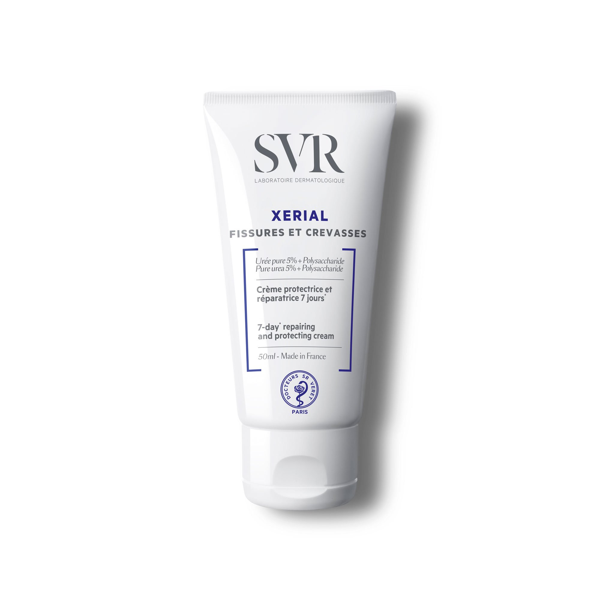 Pieds, mains.GRÂCE À LA TECHNOLOGIE URÉE PURE (BREVET DÉPOSÉ) CONCENTRÉE À 5%, PROTÉASE, ACIDES AMINÉS ET POLYSACCHARIDE, XÉRIAL FISSURES ET CREVASSES RÉPARE LES FISSURES ET LES CREVASSES EN 7 JOURS. ENRICHI EN BEURRE DE KARITÉ ET ALLANTOÏNE, XÉRIAL FISSURES ET CREVASSES ISOLE, PROTÈGE ET SOULAGE IMMÉDIATEMENT. LA PEAU REDEVIENT LISSE ET SOUPLE. TRÈS HAUTE TOLÉRANCE.