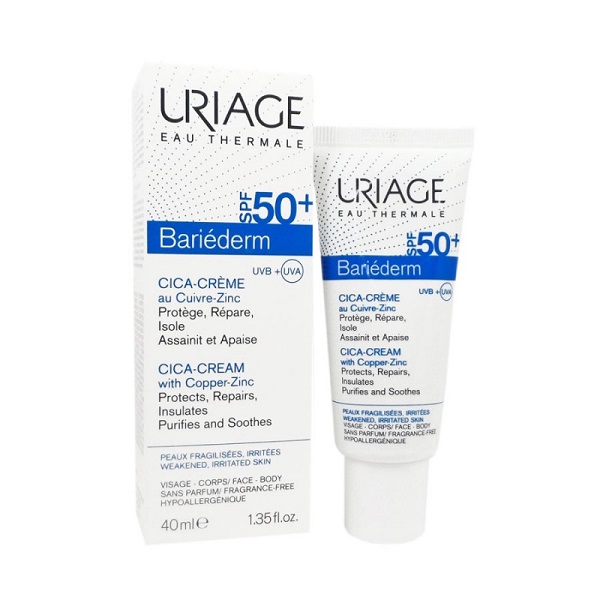 Uriage Bariéderm Cica-Crème SPF 50+ 40 ml est une crème à base de Cuivre et de Zinc qui protège, répare et apaise la peau. Elle est spécialement formulée pour les peaux fragilisées et irritées.
