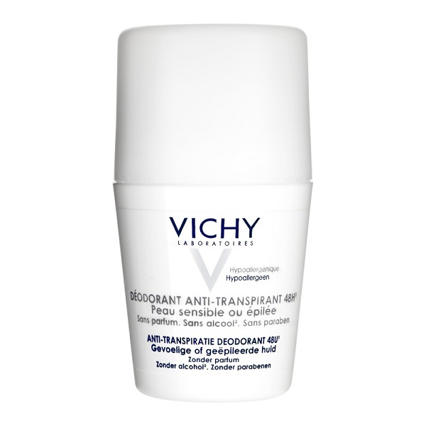 Peaux sensibles ou épilées de Vichy contrôle efficacement la transpiration pendant 48 heures.